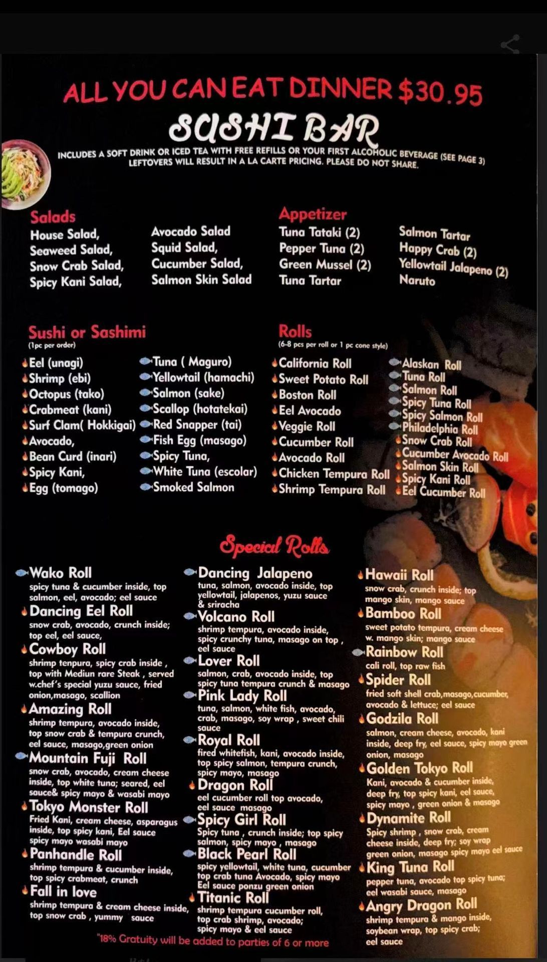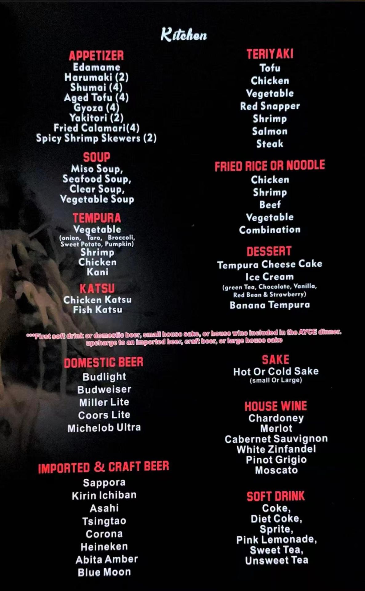 Enjoy All You Can Eat dinner at Wako Japanese Cuisine.